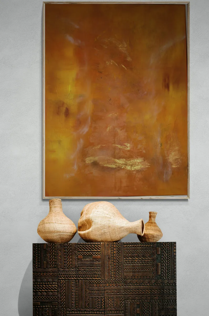 In "Golden Treasure," an ethereal world of warm luminescence unfurls, inviting the beholder to bask in its golden glow. This abstract creation is a dance of warmth and enchantment, where the canvas becomes a portal to a realm bathed in the resplendence of sunlight's embrace. The tapestry of swirling patterns, woven in rich yellows and oranges, conjures the sensation of a sunlit waltz, partner to the whispering winds and rustling leaves of a Nordic dreamscape. Here, fluidity reigns, as every curve and contour move with a grace that transcends time and space. Soft, hazy textures glimmer like the faint traces of bygone dreams, offering glimpses into a hidden world where light and shadow play an eternal game of chase. The composition is a harmonious melding of bold vibrancy and gentle transitions, casting a beguiling spell that leaves onlookers enchanted. Inspired by the awe-inspiring majesty of Norwegian nature, "Golden Treasure" captures the essence of the sublime. It is a celebration of the intangible glow that permeates even the most ordinary moments, transforming them into sacred embers of opulence and joy. This painting beckons viewers into a sanctuary of the soul, where the golden light drapes itself over the senses, whispering secrets of dawns witnessed and epochs untold. As one stands before this masterpiece, the mystique of its depth unravels, revealing an everlasting journey through the realms of imagination and emotion. It is an invitation to wander through the corridors of dream and desire, where the hues of sunlight and the echoes of nature's song converge in a symphony of whispered possibilities. "Golden Treasure" leaves an indelible mark upon the spirit, a silent testament to the beauty awaiting those who dare to look beyond the horizon.