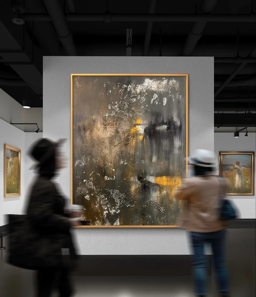 Dawn4U is a vibrant exploration of color and texture, where warm orange tones generate a radiant, inviting atmosphere. At the heart of the composition, a vertical band of varied textures and hues offers contrast and complexity, punctuated by striking patches of blue near both the top and bottom. These cooler accents create a dynamic interplay against the dominant warmth, drawing the eye through subtle shifts and layered brushwork. The surface invites close inspection, revealing an intricate layering that adds depth and a tactile quality to the piece. Inspired by the natural light and seasonal energy of Norwegian summers, this work captures an organic, atmospheric mood that balances bold color with thoughtful movement, inviting viewers to experience a sense of renewal and quiet intensity.